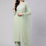 Green Embroidered Straight Kurta With Palazzo And Dupatta