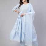 Blue Embroidered Flared Kurta With Trouser And Dupatta