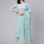 Blue Embroidered Straight Kurta With Trouser And Dupatta