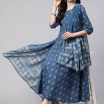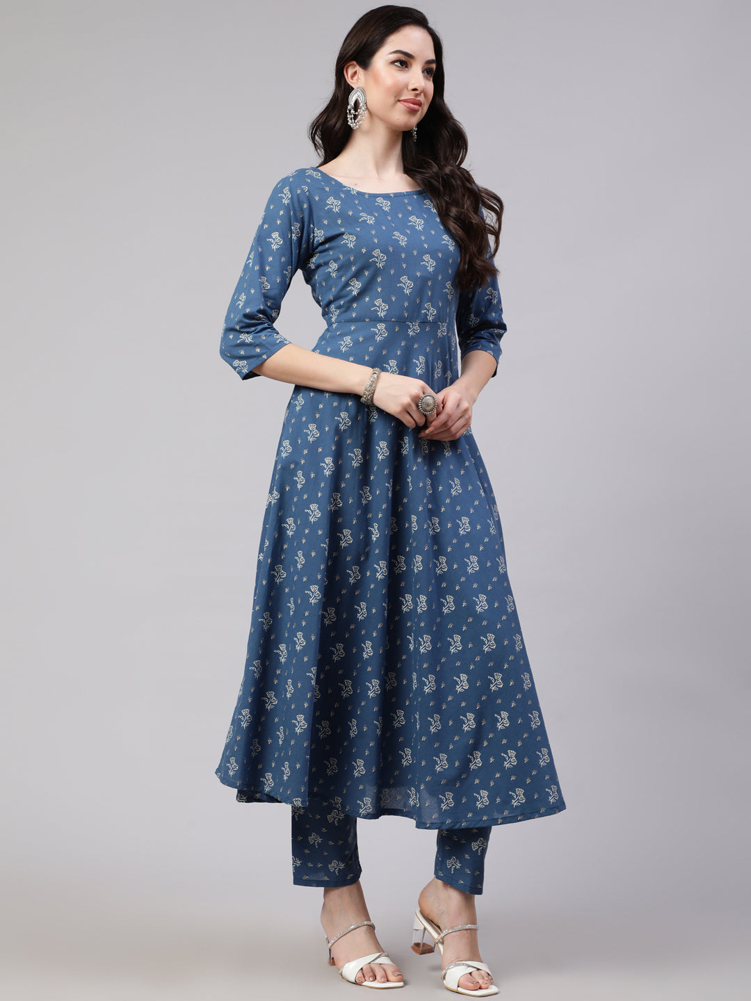 Blue Floral Printed Anarkali Kurta With Trouser And Dupatta
