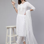 White Lace Details Straight Kurta With Trouser And Net Dupatta