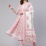 Pink Floral Printed Anarkali Kurta With Trouser And Dupatta