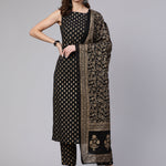Black Printed Straight Kurta With Trouser And Dupatta