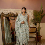 Green Printed Straight Kurta With Trouser And Dupatta