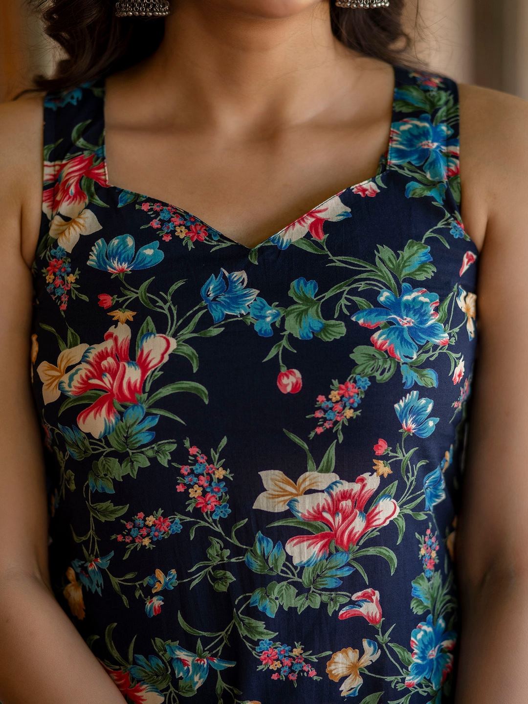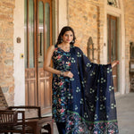 Navy Blue Printed Straight Kurta With Trouser And Dupatta