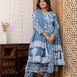 Blue Floral Printed Anarkali Kurta And Trouser With Dupatta