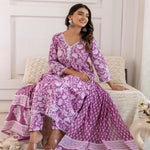 Mauve Floral Printed Anarkali Kurta And Trouser With Dupatta
