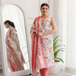 Off White Printed Straight Kurta With Trouser And Dupatta
