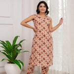 Multi Printed Straight Sleeveless Kurta Pant Set