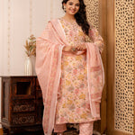 Pink Printed Straight Kurta And Trouser With Dupatta