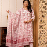 Mauve Floral Printed Straight Kurta And Trouser With Dupatta