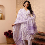 Lavender Floral Printed Straight Kurta And Trouser With Dupatta