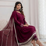Burgundy Anarkali Kurta And Trouser With Dupatta