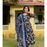 Navy Blue Printed Anarkali Kurta Set With Dupatta