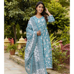Blue Printed Anarkali Kurta Set With Dupatta