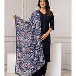 Navy Blue Straight Kurta Set With Printed Dupatta