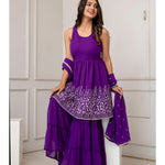 Purple Embroidered Kurti And Sharara Set With Dupatta