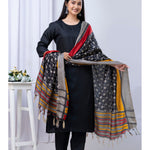 Black Straight Kurta Set With Printed Dupatta