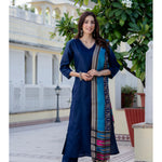 Navy Blue Straight Kurta Set With Printed Dupatta
