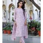 Mauve Printed Straight Kurta Set With Dupatta for Women