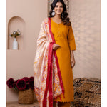 Mustard Straight Kurta Set With Printed Dupatta for Women