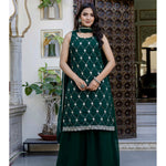 Green Embroidered Kurta With Wide Leg Palazzo and Dupatta