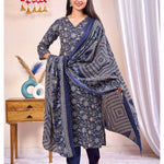 Navy Blue Printed Straight Kurta Set With Dupatta
