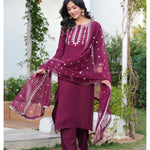 Burgundy Embroidered Straight Kurta With Palazzo And Dupatta