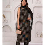 Black Printed Kurta Set With Solid Dupatta