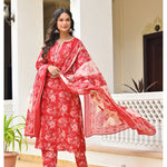 Red Printed Straight Kurta & Trouser With Dupatta for Women