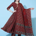 Cotton Calf Length Printed Semi-Flared 3/4 Sleeves Sweetheart Neck Kurta Bottom Dupatta Set