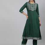 Rayon Sequence 3/4 Sleeve A-Line Round Neck Calf Length Kurta Set