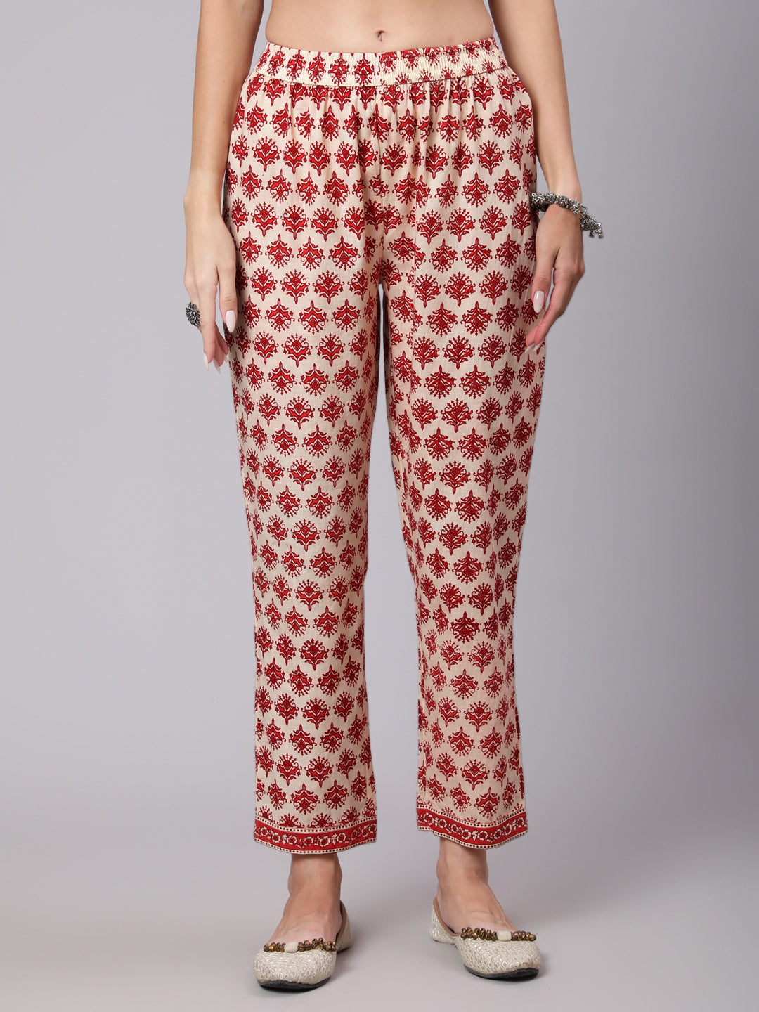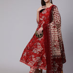 Cotton Calf Length Printed Flared 3/4 Sleeve Round Neck Kurta Bottom Dupatta Set