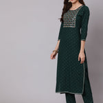 Rayon Calf Length Foil Print Straight 3/4 Sleeve Round Neck Kurta Pant