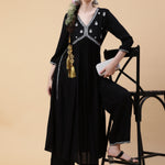 Rayon Calf Length Solid Flared 3/4 Sleeves V-Neck Kurta Bottom Set