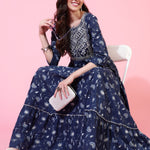 Cotton Ankle Length Printed Flared 3/4 Sleeves Round Neck Kurta Set