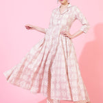 Cotton Calf Length Printed Flared 3/4 Sleeves Coller Neck Kurta Bottom Set