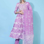 Rayon Calf Length Printed Semi-Flared 3/4 sleeves Round Neck Kurta Bottom Dupatta Set