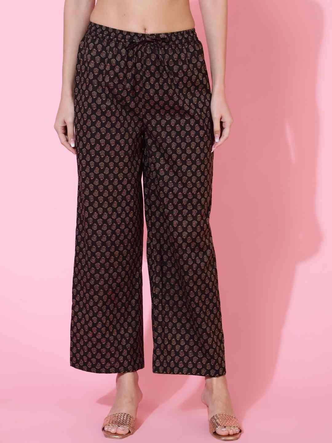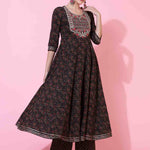 Cotton Calf Length Printed Flared 3/4 sleeves Round Neck Kurta Bottom Set