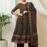 Cotton Calf Length Printed 3/4 Sleeve Round Neck Kurta Bottom Dupatta Set