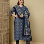 Calf Length Straight 3/4 Sleeves V Kurta Bottom Dupatta Set
