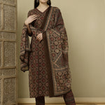 Calf Length Straight 3/4 Sleeves V Kurta Bottom Dupatta Set