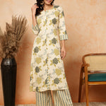 Rayon Calf Length Printed Straight 3/4 Sleeves Round Kurta Bottom Set