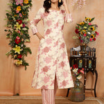 Rayon Calf Length Printed Straight 3/4 Sleeves Round Kurta Bottom Set
