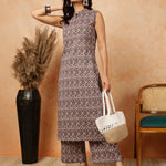 Cotton Calf Length Printed Straight Sleeveless Mandarin Kurta Bottom Set