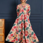 Cotton Calf Length Printed Flared 3/4 Sleeves V-Neck Kurta Bottom