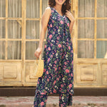Cotton Calf Length Printed Flared Sleeveless V-Neck Kurta Bottom Set