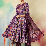 Cotton Calf Length Printed & Embroidered Flared 3/4 Sleeves Sweet Heart Neck Kurta Suit Set With Dupatta