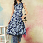 Cotton Calf Length Printed Straight Sleeveless Round Neck Kurta With Palazzos