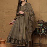 Cotton Calf Length Printed 3/4 Sleeves V-Neck Anarkali Kurta Bottom With Dupatta